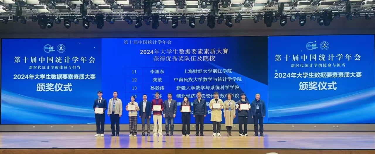 近日,由数据工程与技术应用教学联盟发起,江西财经大学承办的2024年大学生数据要素素质大赛圆满落幕。乐玩2件作品获得优秀奖,颁奖仪式在第十届中国统计学年会中举行,1组学生团队作为优秀代表受邀参加。