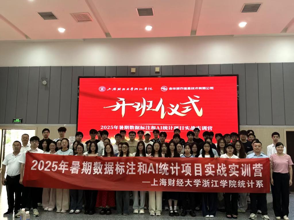 近日,乐玩联合金华浙农信息技术有限公司,共同举办2025年暑期数据标注和AI统计项目实战实训营。金华浙农信息技术有限公司总经理郑永富及相关技术骨干,统计系负责人武斌及相关教师,以及全体参训学生共同出席开营典礼。