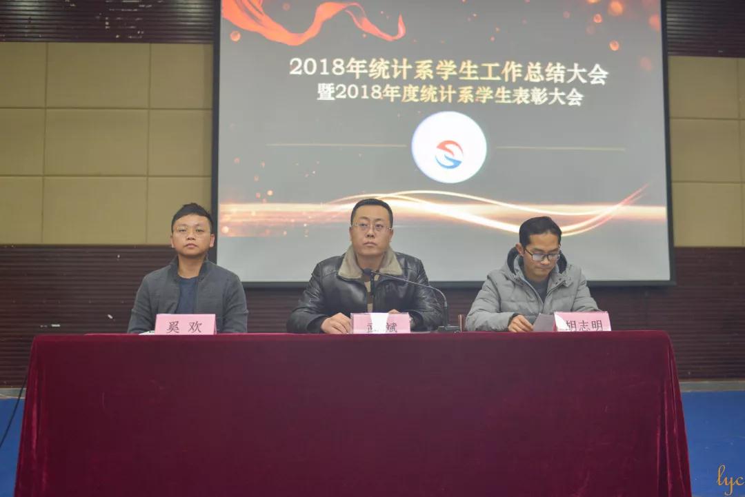 12月27日下午在图书馆报告厅举行了2018年统计系学生工作总结大会暨2018年统计系学生表彰大会。统计系副主任、统计系教工党支部书记武斌老师,应用统计学教研室主任、学科竞赛负责人胡志明老师,数据科学教研室主任奚欢老师,教学秘书孙思宇老师、辅导员韩丹华老师,参加了此次会议,会议由辅导员李歆老师主持。
