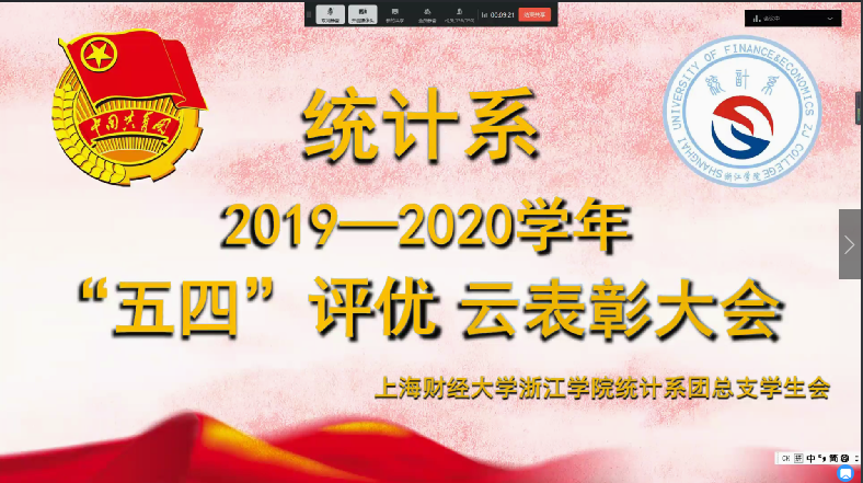 2020年5月13日晚,为表彰先进集体个人,传递榜样力量,同时肩负起坚守抗疫战线,不忘初心的时代责任。我系于钉钉举行统计系 2019-2020 学年“五四”评优云表彰大会,统计系党总支副书记吴京京老师、统计系团总支学生会指导老师李歆老师皆出席此次大会。