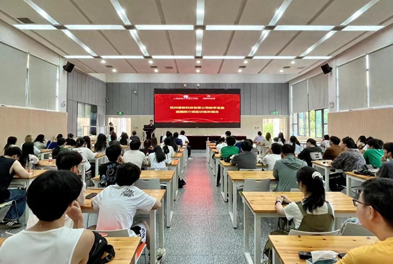 杭州睿数科技有限公司教学总监梁国际介绍了此次暑期实训的目标、涵盖的主要内容、班级管理制度及结业标准。学生代表胡楚做了表态发言。